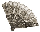 Placing the fan handle to the lips or a half-opened fan pressed to the mouth -