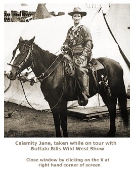 In 1876, Jane, by a daring feat, saved the lives of six passengers on a stage coach traveling from Deadwood to Wild Birch, in the Black hills country.