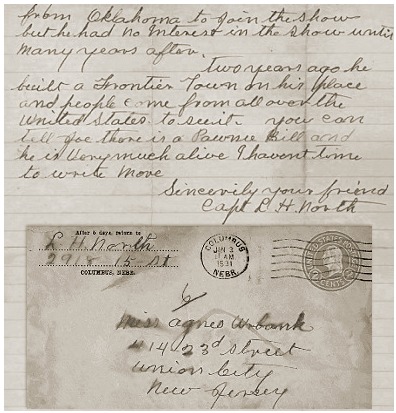 "I wrote you a letter a day or two ago and today received yours of Dec. 28th. I will first answer your questions now as I will be pretty busy for the next week. Tuesday January 6th there will be a meeting of the State Historical Society in Lincoln which I will attend. Major Gordon W. Lillie (Pawnee Bill) is still Living at Pawnee Oklahoma I have known him for a great many years he was in partnership with Buffalo Bill in the wild West show for many years. he has a beautiful Ranche (sic) near Pawnee Oklahoma his home cost Seventy thousand dollars and I have been told he has it well stocked now he has a small herd of Buffalo on his Ranche (sic) I haven't seen him for three years but get letters from him every now and then. when Cody (Buffalo Bill) first started the Wild West Show in 1883 Pawnee Bill who was perhaps 14 years old brought the Indians up from Oklahoma to join the show but he had no interest in the Show until many years after. two years ago he built a Frontier Town on his place and people come from all over the United States to see it. You can tell Joe there is a Pawnee Bill and he is Very much alive I haven't time to write more."