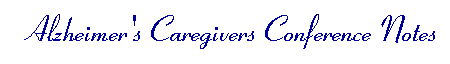 The presenters were: Dr. Richard E. Powers (a geriatric psychiatrist and neuropathologist), Connie L. Glass (partner in the Elder Law Firm of Glass & Wallace P.C. in Huntsville, AL), Tamara Johnson (an occupational therapist with Reflections, a gereopsychiatric unit at Hartselle Medical Center), and Carol Mosley (the Executive Director of The Village at Cook Springs). Rev. George Wagner, President of the Board of Directors of the North Alabama Chapter of the Alzheimer's Association, welcomed everyone to the conference. He was followed by Kim Holbrook, Executive Director of the North Alabama Chapter of the Alzheimer's Association, who read the Caregiver's Bill of Rights. Kim also told us that her father, who had Alzheimer's, had passed away just four weeks prior to this conference.